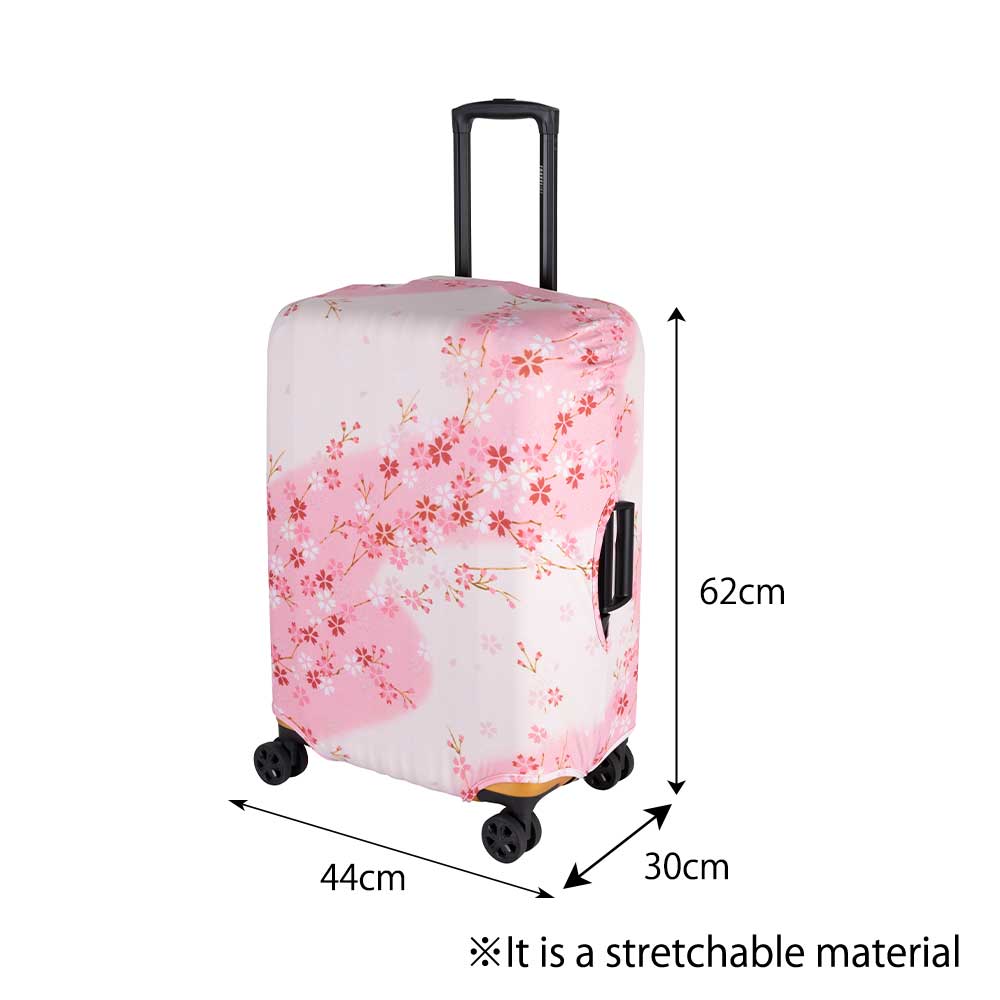 おしゃれな桜柄デザインで、空港での荷物受け取りや大人数での移動時でも、スーツケースが見つけやすくなります。伸縮性のある素材で、スーツケースへの取り付けも簡単です。